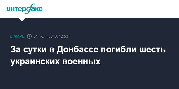 Москва. 24 июля. INTERFAX.RU - За минувшие сутки, 23 июля, в зоне проведения спецоперации на востоке Украины шесть украинских военнослужащих погибли, сообщил спикер администрации президента по вопросам спецоперации Александр Мотузяник.