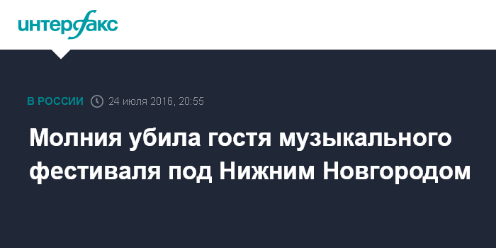 Москва. 24 июля. INTERFAX.RU - Один человек погиб, двое пострадали в результате удара молнии во время музыкального фестиваля в Балахнинском районе Нижегородской области в воскресенье.
