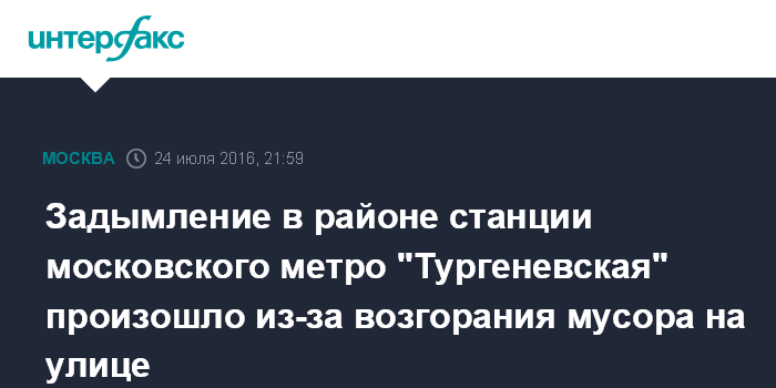 Москва. 24 июля. INTERFAX.RU - Вблизи станции "Тургеневская" Калужско-Рижской линии московского метрополитена наблюдается незначительное задымление, вероятно, из городских коммуникаций.