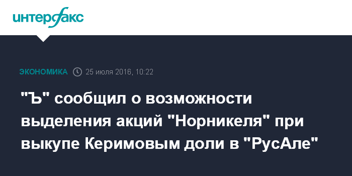 "Ъ" сообщил о возможности выделения акций "Норникеля" при выкупе Керимовым доли в "РусАле"