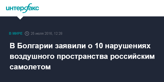 Москва. 25 июля. INTERFAX.RU - Российские самолеты в июне не менее 10 раз вторгались в воздушное пространство Болгарии, заявил глава болгарского оборонного ведомства Николай Ненчев.