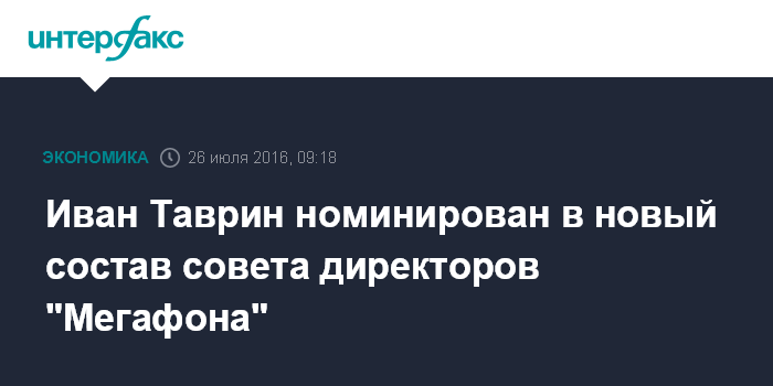Москва. 26 июля. INTERFAX.RU - Бывший гендиректор ПАО "Мегафон" Иван Таврин номинирован в новый состав совета директоров компании.