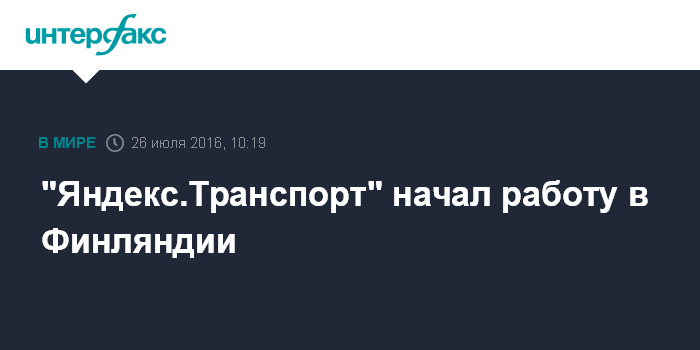Москва. 26 июля. INTERFAX.RU - "Яндекс.Транспорт" (дочерняя компания "Яндекса") вышла на рынок Финляндии, запустив мобильное приложение сервиса в двух городах - Хельсинки и Тампере, сообщили "Интерфаксу" в интернет-компании. Это стало первым выходом сервиса за пределы стран СНГ.