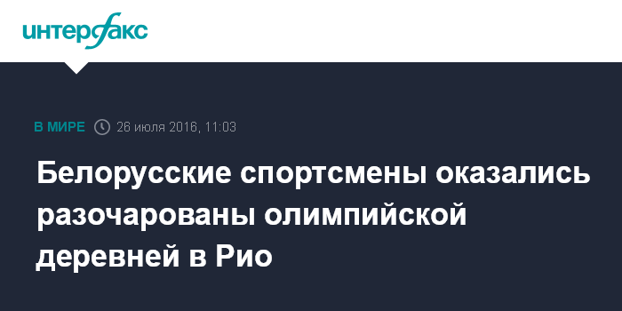 Москва. 26 июля. INTERFAX.RU - Белорусская делегация в Рио-де-Жанейро отмечает недоработки в организации проживания спортсменов в олимпийской деревне, говорится в сообщении, размещенном на официальном сайте Национального олимпийского комитета (НОК) республики.
