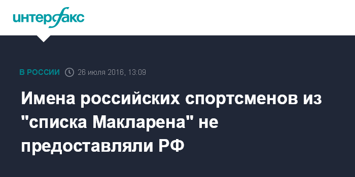 Ранее глава Минспорта Виталий Мутко заявил журналистам, что РФ намерена добиваться раскрытия имен спортсменов, фигурирующих в докладе ВАДА. По словам министра, список с именами спортсменов, чьи допинг-пробы якобы были заменены на Олимпиаде в Сочи, составлен экс-главой Московской антидопинговой лаборатории Григорием Родченковым и, по всей видимости, есть только у него.