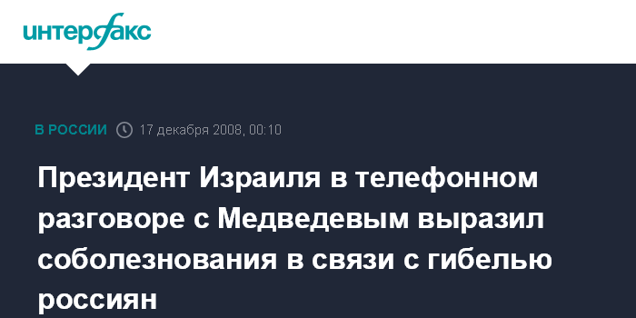Президент Израиля в телефонном разговоре с Медведевым выразил соболезнования в связи с гибелью россиян