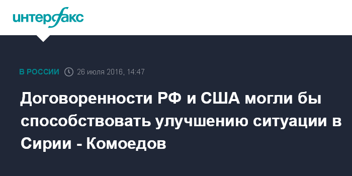 Договоренности РФ и США могли бы способствовать улучшению ситуации в Сирии - Комоедов