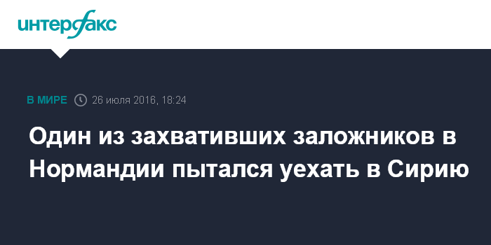 Во вторник французская газета Le Figaro сообщила, что два человека, вооруженных холодным оружием, вошли в церковь с черного входа и взяли в заложники пять человек - священника, двух монахинь и двоих прихожан. Одной их монахинь удалось выбежать из церкви и поднять тревогу. В результате полицейской спецоперации священник погиб - ему перерезали горло, еще один заложник находится в критическом состоянии "между жизнью и смертью". Полиция ликвидировала обоих нападавших, ответственность за случившееся взяла на себя запрещенная в РФ террористическая группировка "Исламское государство".