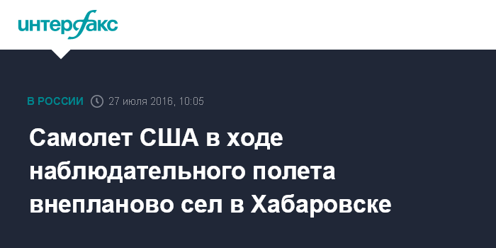 Как сообщил агентству информированный источник, совершивший внеплановую посадку в Хабаровске самолет выполнял рейс в рамках реализации международного Договора по открытому небу.