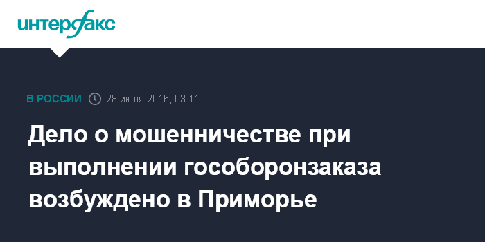 Дело о мошенничестве при выполнении гособоронзаказа возбуждено в Приморье