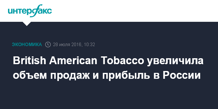 Москва. 28 июля. INTERFAX.RU - Производитель сигарет British American Tobacco (BAT) в первом полугодии нарастил выручку и продажи сигарет и отметил сильную динамику на российском рынке.
