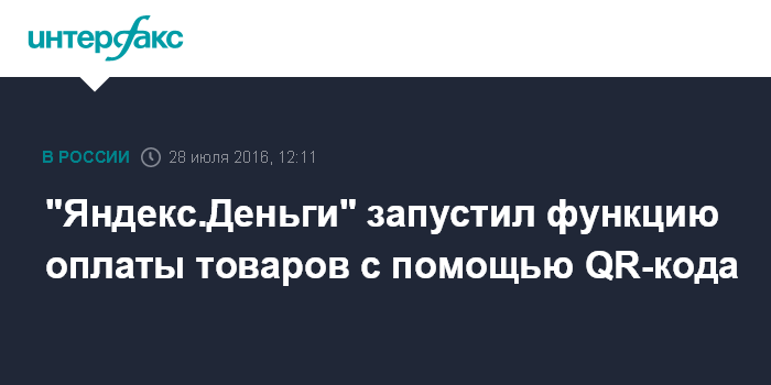 Москва. 28 июля. INTERFAX.RU - "Яндекс.Деньги" запускает функцию оплаты товаров с помощью QR-кода, сообщил журналистам директор по маркетингу Евгений Николаев.