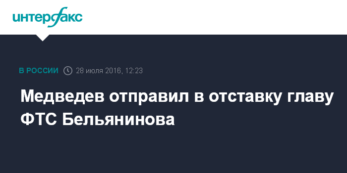 Москва. 28 июля. INTERFAX.RU - Премьер-министр Дмитрий Медведев отправил в отставку главу Федеральной таможенной службы Андрея Бельянинова.