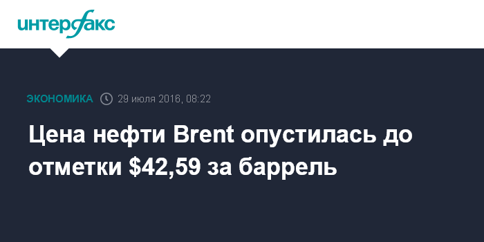 Цена нефти Brent опустилась до отметки $42,59 за баррель