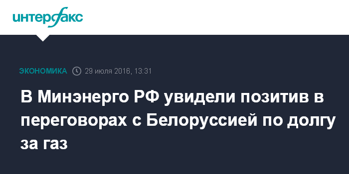 Москва. 29 июля. INTERFAX.RU - Минэнерго РФ отмечает позитивные подвижки в урегулировании вопроса выплаты долга Белоруссии за газ, сообщил министр энергетики РФ Александр Новак журналистам.