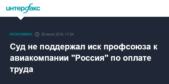 Суд не поддержал иск профсоюза к авиакомпании "Россия" по оплате труда