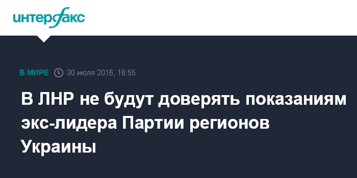 В ЛНР не будут доверять показаниям экс-лидера Партии регионов Украины