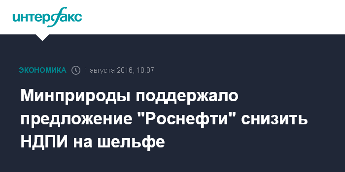 Москва. 1 августа. INTERFAX.RU - Минприроды РФ поддерживает предложение "Роснефти" снизить льготу по налогу на добычу полезных ископаемых (НДПИ) на месторождениях на шельфе с пяти до одного процента, сообщил журналистам глава ведомства Сергей Донской.
