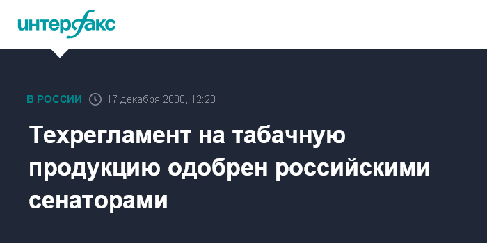 Техрегламент на табачную продукцию одобрен российскими сенаторами