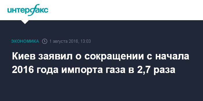 Киев заявил о сокращении с начала 2016 года импорта газа в 2,7 раза