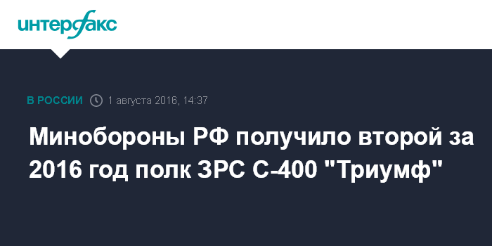 Минобороны РФ получило второй за 2016 год полк ЗРС С-400 "Триумф"