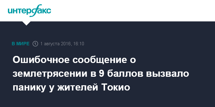 Москва. 1 августа. INTERFAX.RU - Ложное сообщение о мощном землетрясении переполошило многих жителей Токио в понедельник, сообщили местные СМИ.