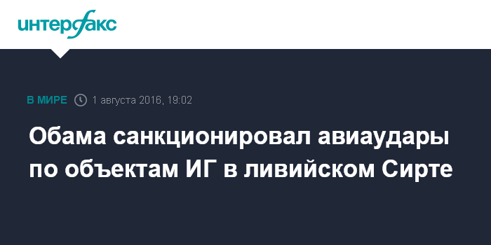 Москва. 1 августа. INTERFAX.RU - США нанесли авиаудары по позициям группировки "Исламское государство" (запрещена в РФ) в ливийском городе Сирте, заявил в понедельник представитель Пентагона Питер Кук.