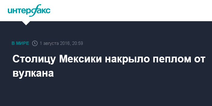 Москва. 1 августа. INTERFAX.RU - Из-за возобновившейся активности вулкана Попокатепетль пеплом засыпало ряд районов Мехико, сообщают в понедельник западные СМИ со ссылкой на местные власти.
