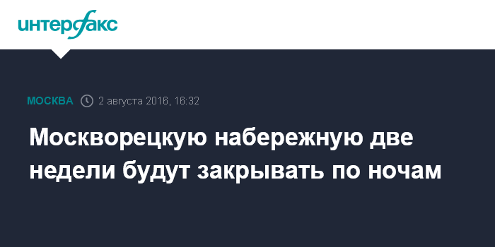 Москва. 2 августа. INTERFAX.RU - Сквозное движение автотранспорта по Москворецкой набережной будет закрыто в ночное время со 2 по 15 августа из-за строительства парка "Зарядье", сообщает во вторник пресс-служба департамента строительства Москвы.