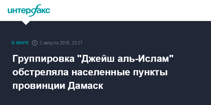 "Формирования причисляющей себя к оппозиции группировки "Джейш аль-Ислам" обстреляли из минометов населенные пункты Арбил, Дума, Хауш-Насри, Барза, Джаубар и Кабун провинции Дамаск. В провинции Латакия вооруженной группировкой "Ахрар аш-Шам" обстрелян населенный пункт Карура", - говорится в бюллетене российского центра по примирению враждующих сторон в Сирии.
