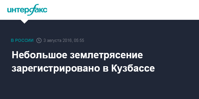 Москва. 3 августа. INTERFAX.RU - Подземный толчок магнитудой 2,5 зарегистрирован в ночь на среду в Кемеровской области, сообщает Алтае-Саянский филиал Единой Геофизической Службы РАН.