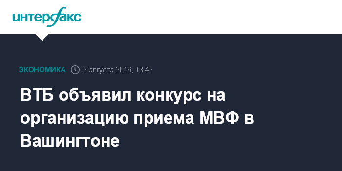 ВТБ объявил конкурс на организацию приема МВФ в Вашингтоне