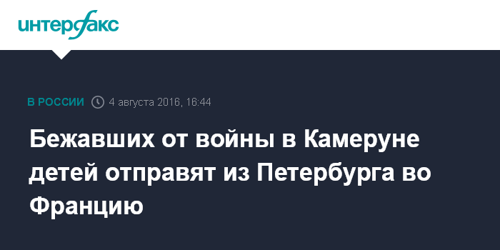 Москва. 4 августа. INTERFAX.RU - Камерунских подростков, которые по подложным документам добрались до России, спасаясь от войны с террористической организацией "Боко Харам" (запрещена в РФ), отправят во Францию, сообщает пресс-служба петербургского управления ФССП.