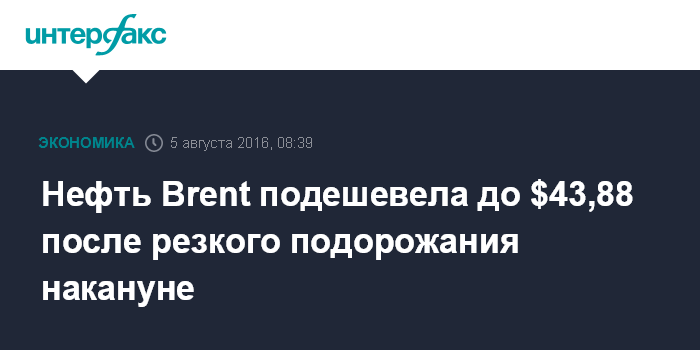 Нефть Brent подешевела до $43,88 после резкого подорожания накануне