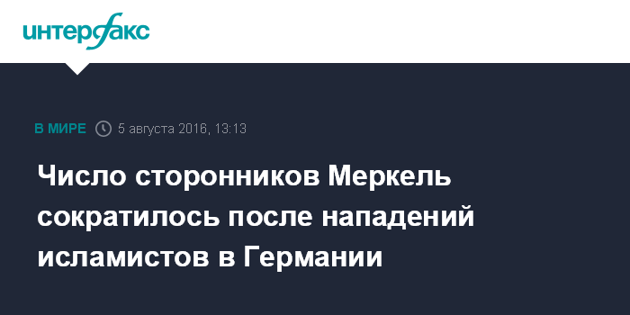 Германские СМИ связывают падение популярности Меркель с рядом атак, связанных с исламистами, происшедших в Ансбахе и Вюрцбурге.