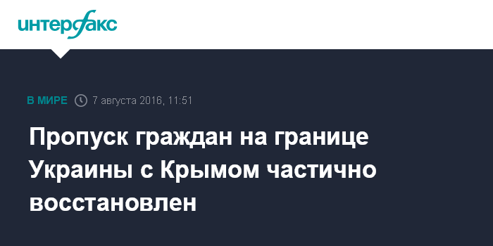 Москва. 7 августа. INTERFAX.RU - В направлении контрольного пункта въезда-выезда "Чонгар" на границе с Крымом восстановлены пропускные операции, сообщает Государственная пограничная служба Украины в воскресенье.