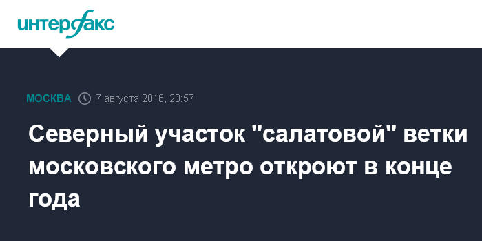 Северный участок "салатовой" ветки московского метро откроют в конце года