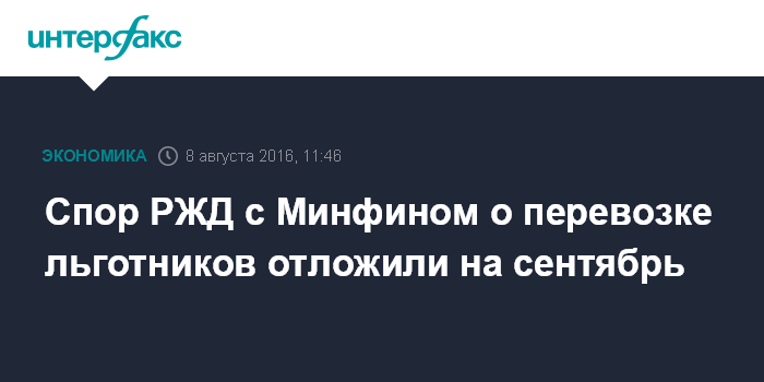 Спор РЖД с Минфином о перевозке льготников отложили на сентябрь