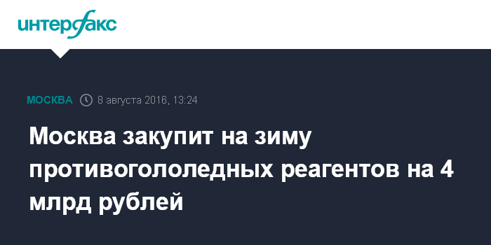 Электронные аукционы на поставку противогололедных материалов объявлены в столице 4 августа. Начальная (суммарная) цена госконтрактов - около 4,2 млрд рублей.