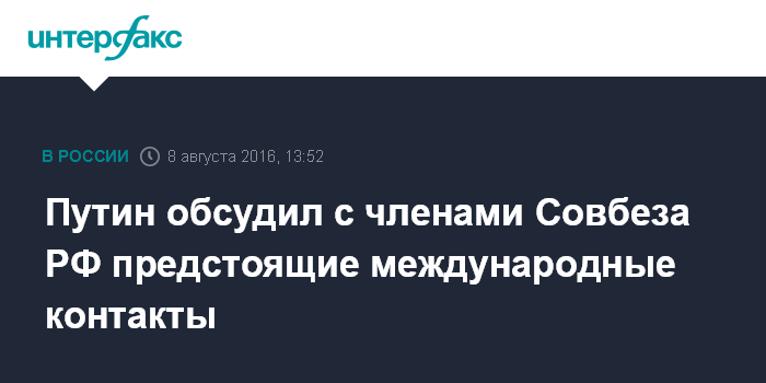 Москва. 8 августа. INTERFAX.RU - Президент РФ Владимир Путин провел в понедельник оперативное совещание с постоянными членами Совета безопасности России, сообщила пресс-служба Кремля.