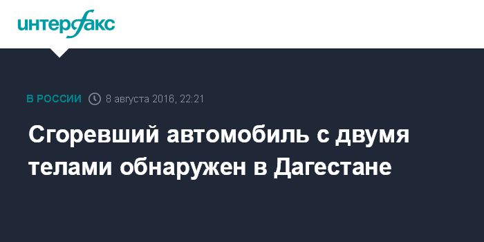 Москва. 8 августа. INTERFAX.RU - Полиция устанавливает личности двух человек, обнаруженных в сгоревшем автомобиле в Дербентском районе Дагестана, сообщили агентству "Интерфакс" в пресс-службе МВД региона.