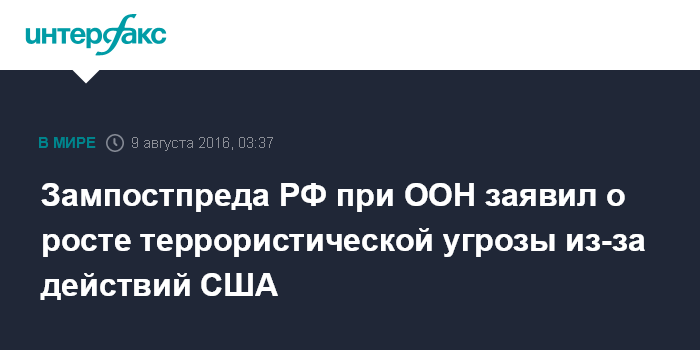 Зампостпреда РФ при ООН заявил о росте террористической угрозы из-за действий США