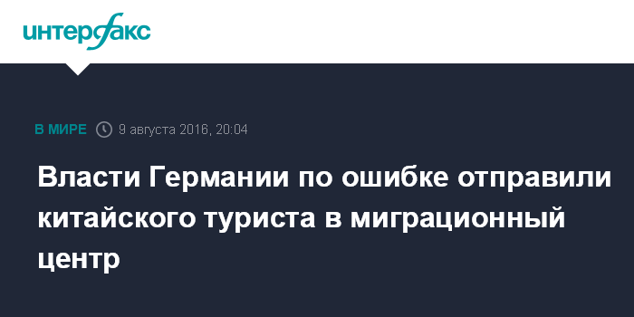 Власти Германии по ошибке отправили китайского туриста в миграционный центр