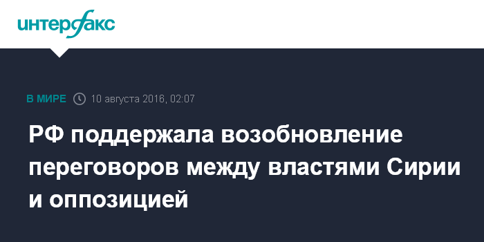 РФ поддержала возобновление переговоров между властями Сирии и оппозицией