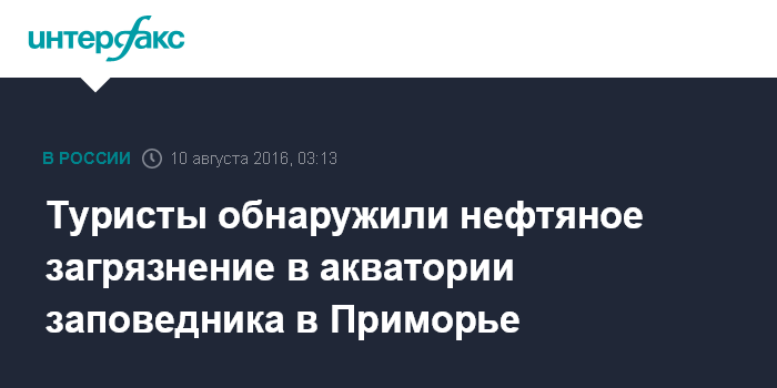 Москва. 10 августа. INTERFAX.RU - Нефтяное загрязнение обнаружено у побережья Хасанского района Приморья, в акватории Дальневосточного морского заповедника, причины установит военная прокуратура. Тихоокеанское морское управление Росприроднадзора сообщило в среду, что первоначально информация о нефтяной пленке в бухте Теляковского, которая частично входит в состав морского заповедника, появилась в соцсетях.