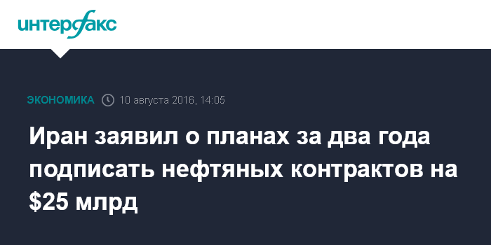 Москва. 10 августа. INTERFAX.RU - Иран планирует в течение двух лет подписать контракты с иностранными нефтяными компаниями на $25 млрд, сообщило агентство Shana со ссылкой на главу Национальной иранской нефтяной компании (NIOC) Али Кардора.