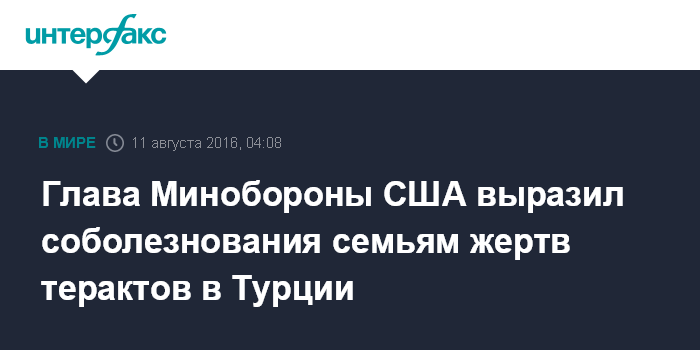 "От имени Министерства обороны, я хочу выразить мои глубочайшие соболезнования семьям жертв сегодняшних нападений на юго-востоке Турции", - говорится в сообщении министра, размещённом на сайте Пентагона.
