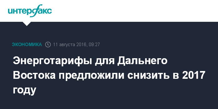 Энерготарифы для Дальнего Востока предложили снизить в 2017 году