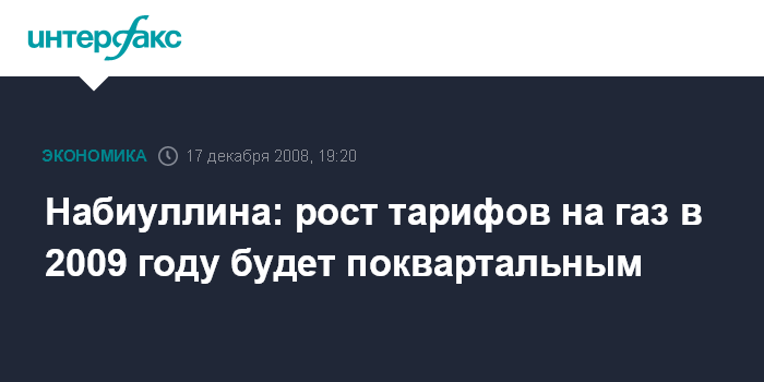Набиуллина: рост тарифов на газ в 2009 году будет поквартальным