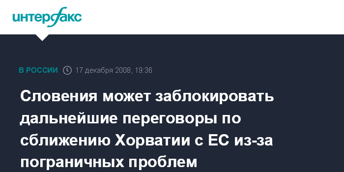 Москва. 17 декабря. INTERFAX.RU - Глава правительства Словении Борут Пахор заявил в среду о намерении ввести вето на открытие новой серии переговоров по сближению Хорватии с ЕС.